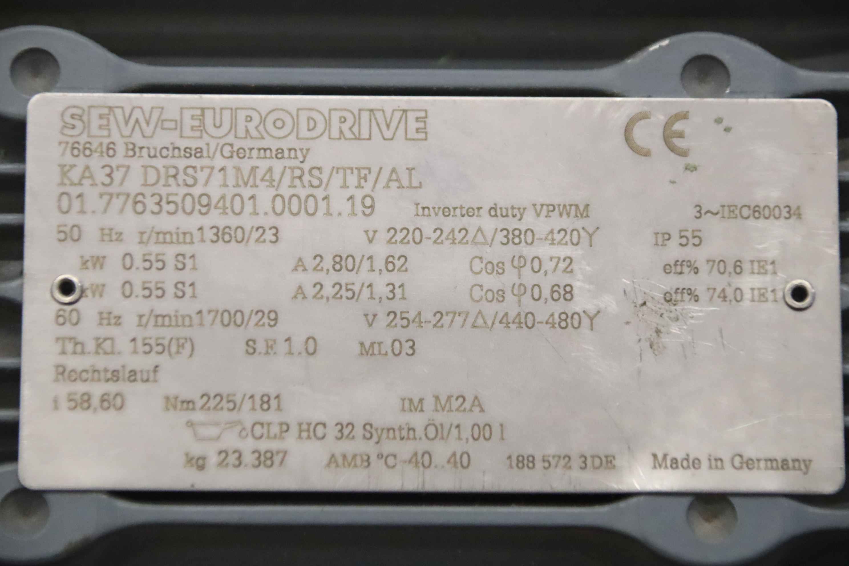 Maschinentyp: Getriebemotor 0,55 kW 23 U/min