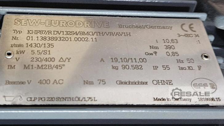 | SEW EURODRIVE | KHF67/R DV132S4/BMG/TH/VR/AV1H | 1500 EUR | [Feb 2024] |