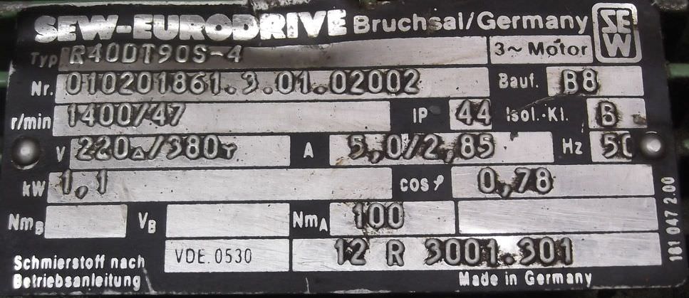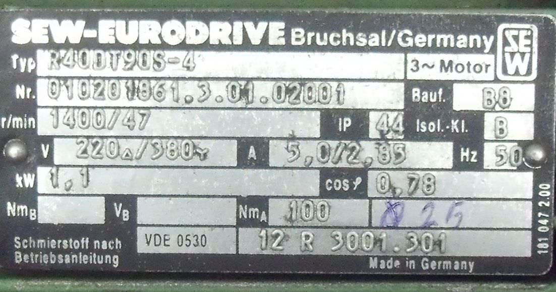Maschinentyp: Getriebemotor 1,1 kW 47 U/min