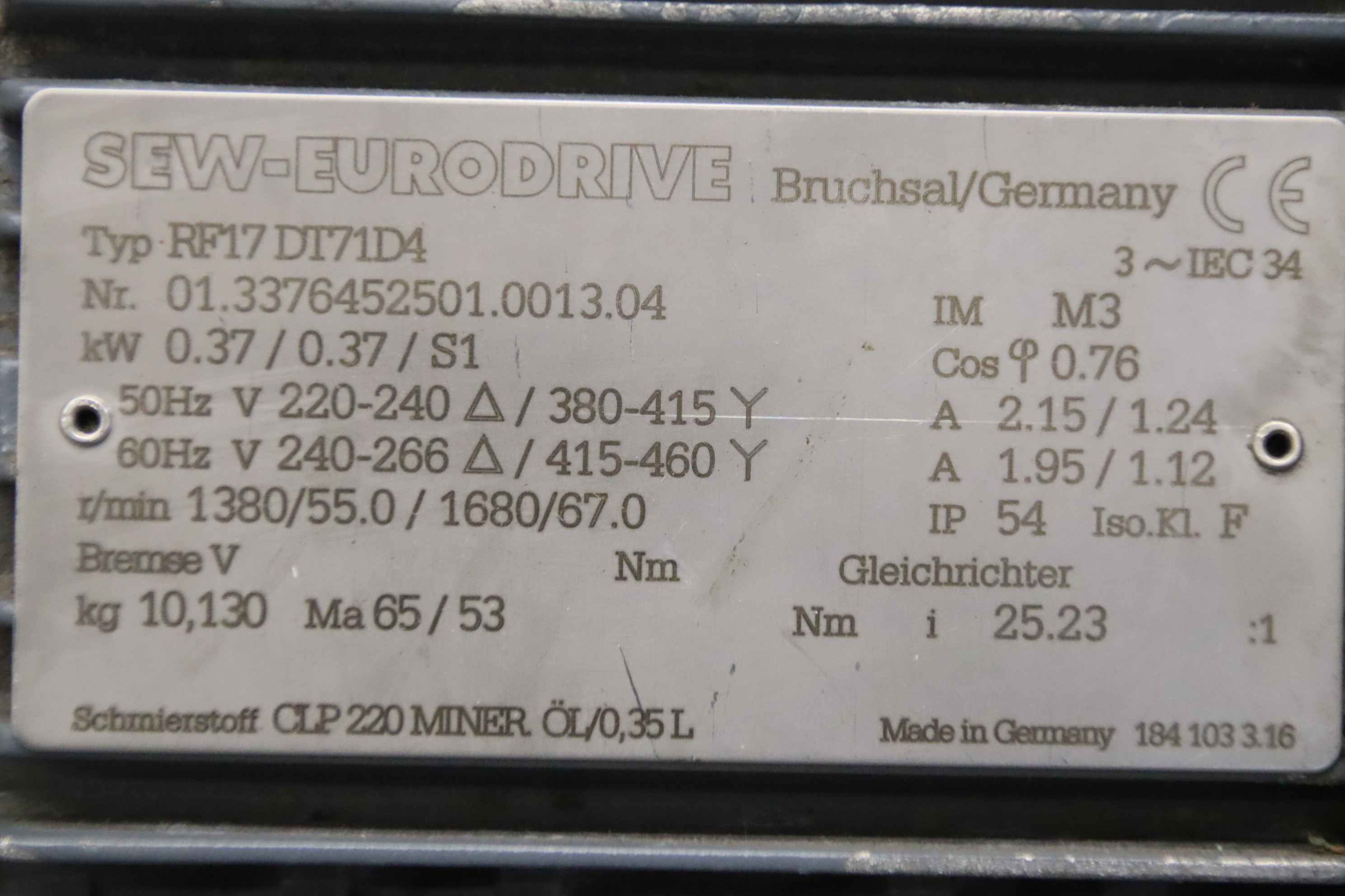 Maschinentyp: Getriebemotor 0,37 kW 55 U/min
