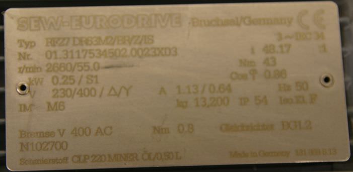 | SEW EURODRIVE | RF27 DT71D4/TF | 280 EUR |