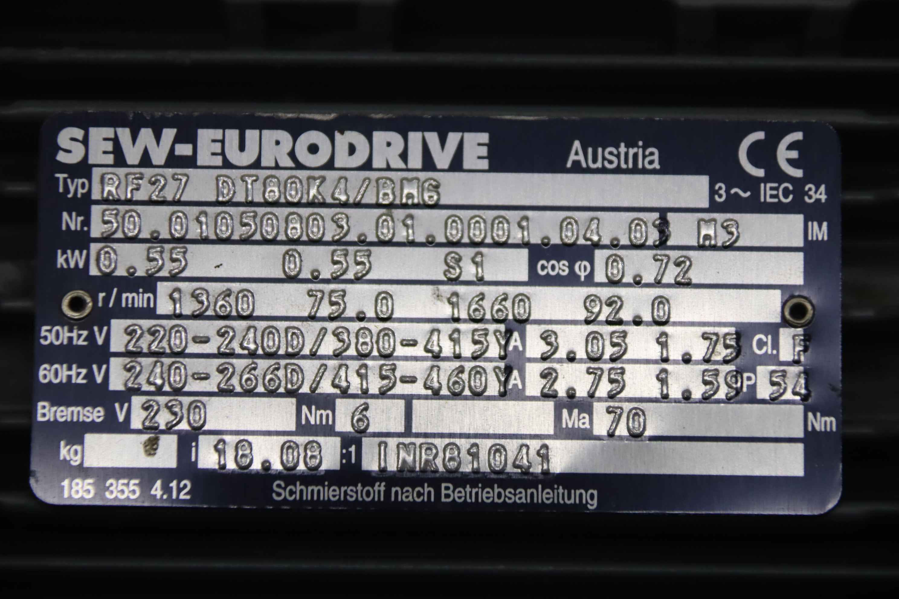 | SEW-EURODRIVE | R47 DT80K4/BMG/HF | 250 EUR | [Jan 2018] | |