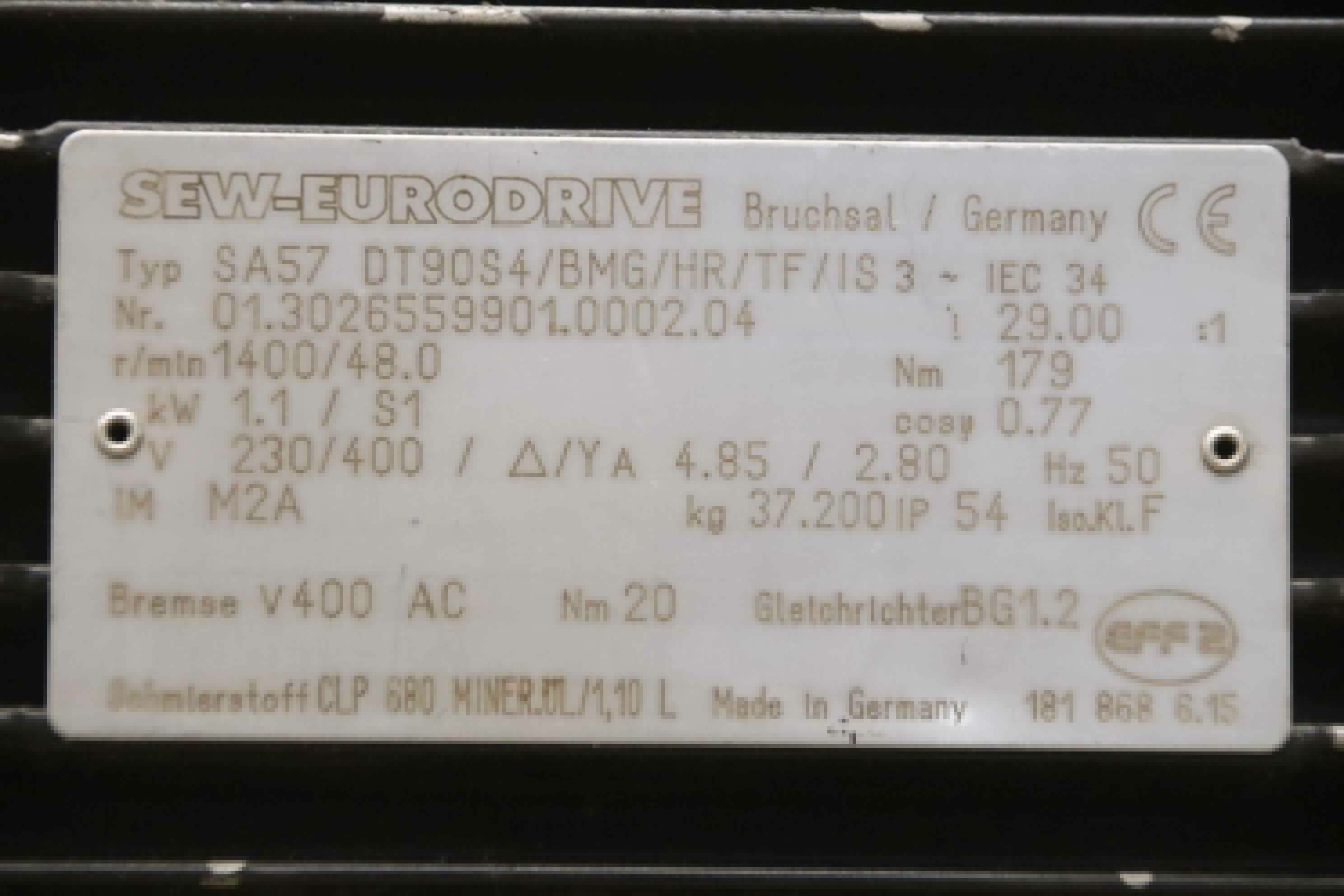 Maschinentyp: Getriebemotor 1,1 kW 48 U/min