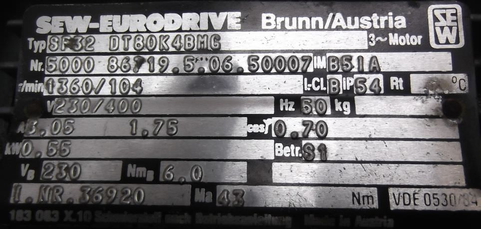 | SEW EURODRIVE | SF32 DT80K4BMG | 290 EUR | |