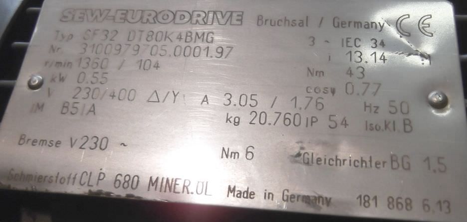 | SEW EURODRIVE | SF32 DT71D4BMG | 250 EUR | |