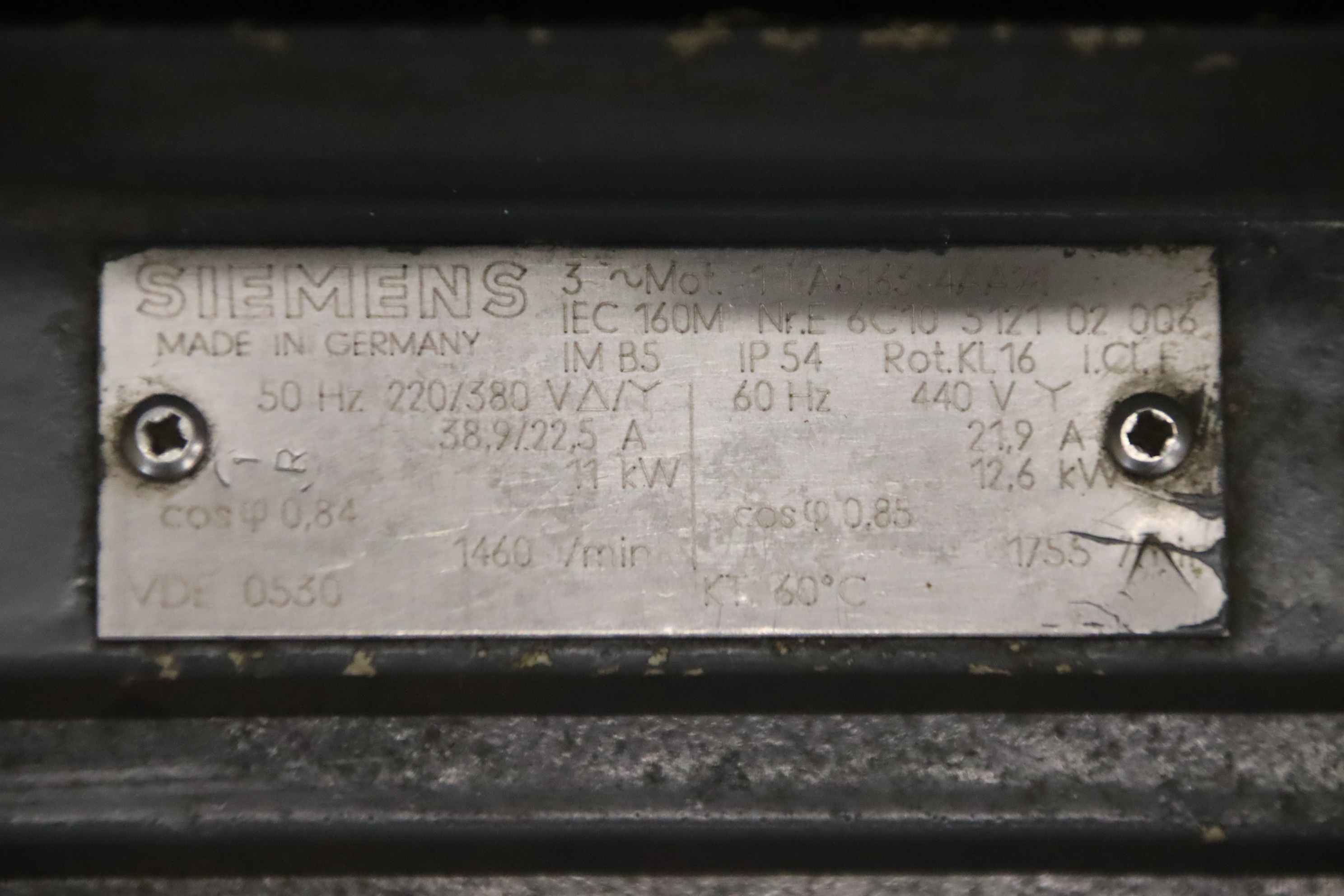 Maschinentyp: Elektromotor 11 kW 1460 U/min