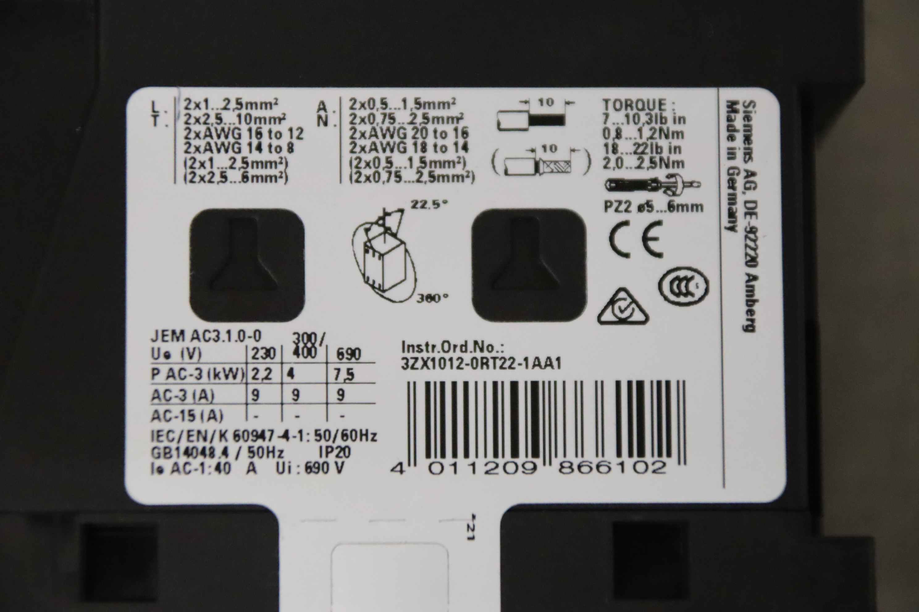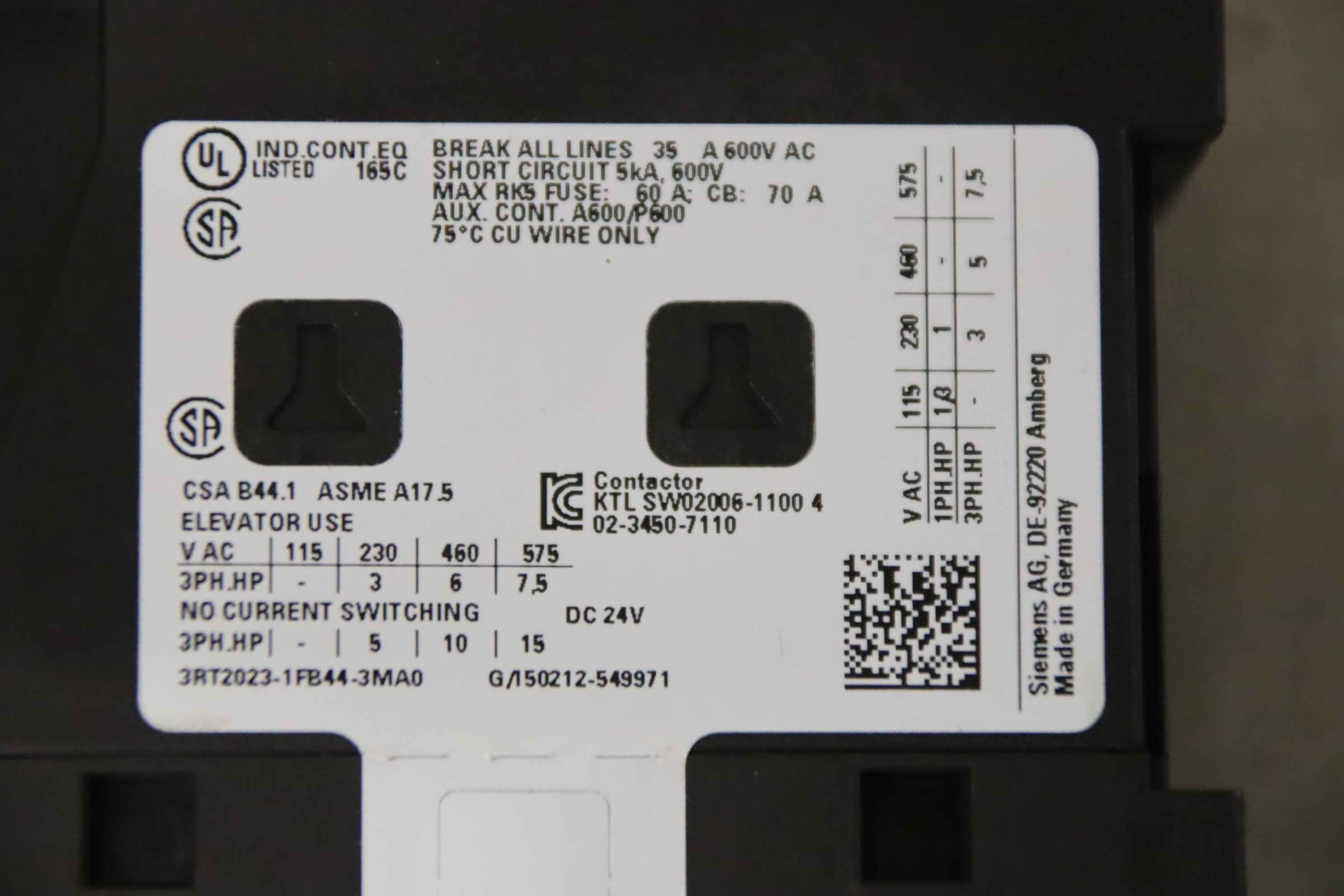 -Hersteller: Siemens, Leistungsschütz