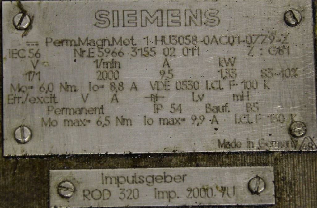 | SIEMENS | Perm.-Man.Motor 1HU3058-0AF01- | 1500 EUR | [Mar 2016] |