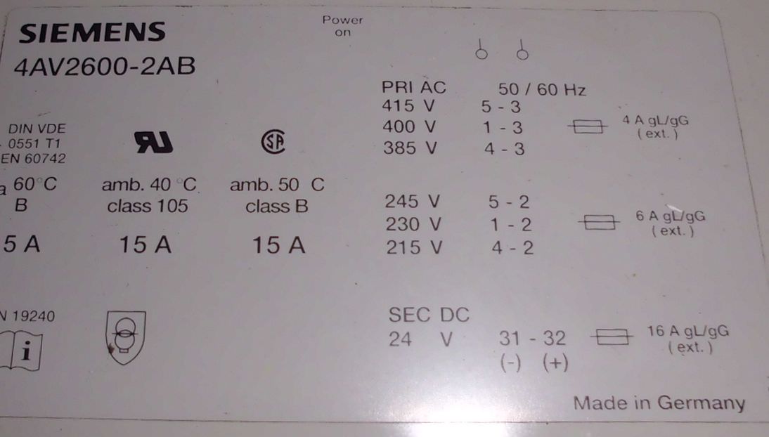 Maschinentyp: Trafo Stromversorgung