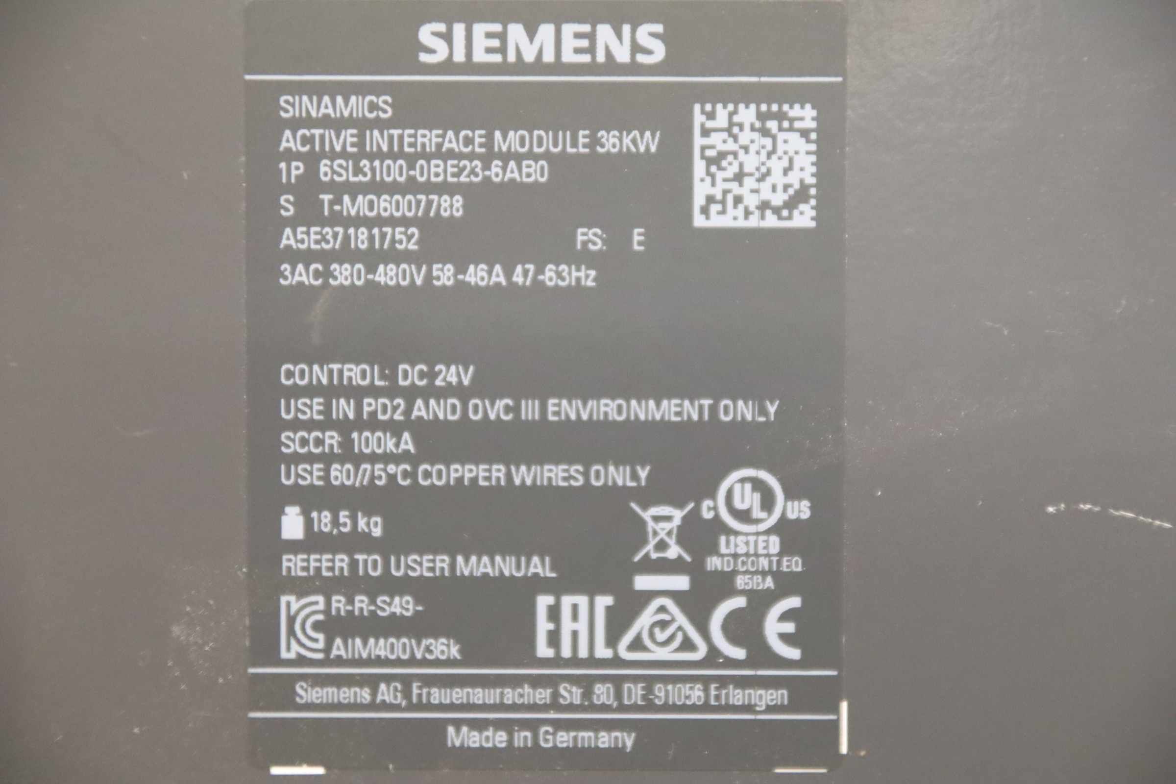 | SIEMENS | 6SL3100-0BE25-5AB0 | 1500 EUR |