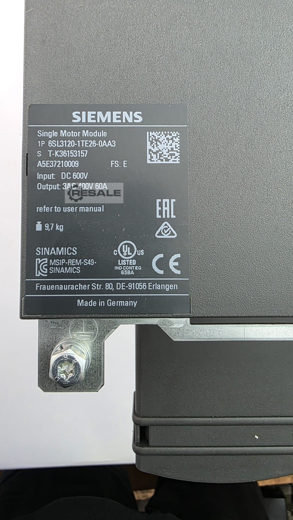 | SIEMENS | 6SL3120-2TE15-0AA4 | 550 EUR | |