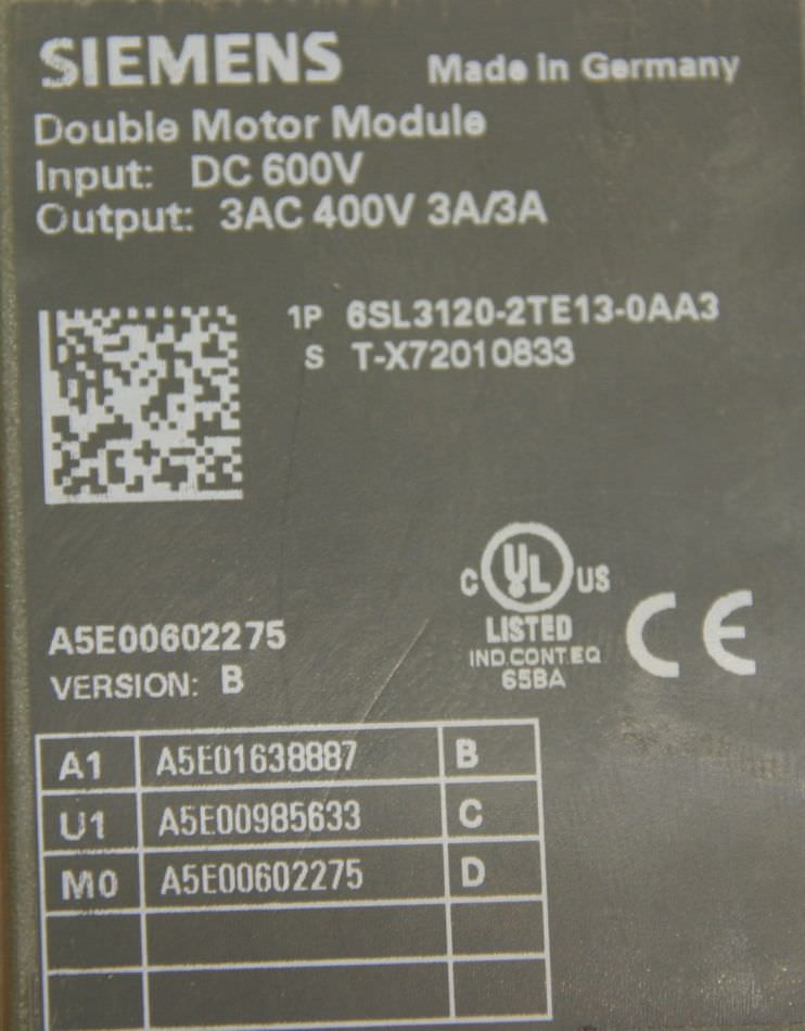 | SIEMENS | 6SL3120-2TE21-OADO | 350 EUR | |