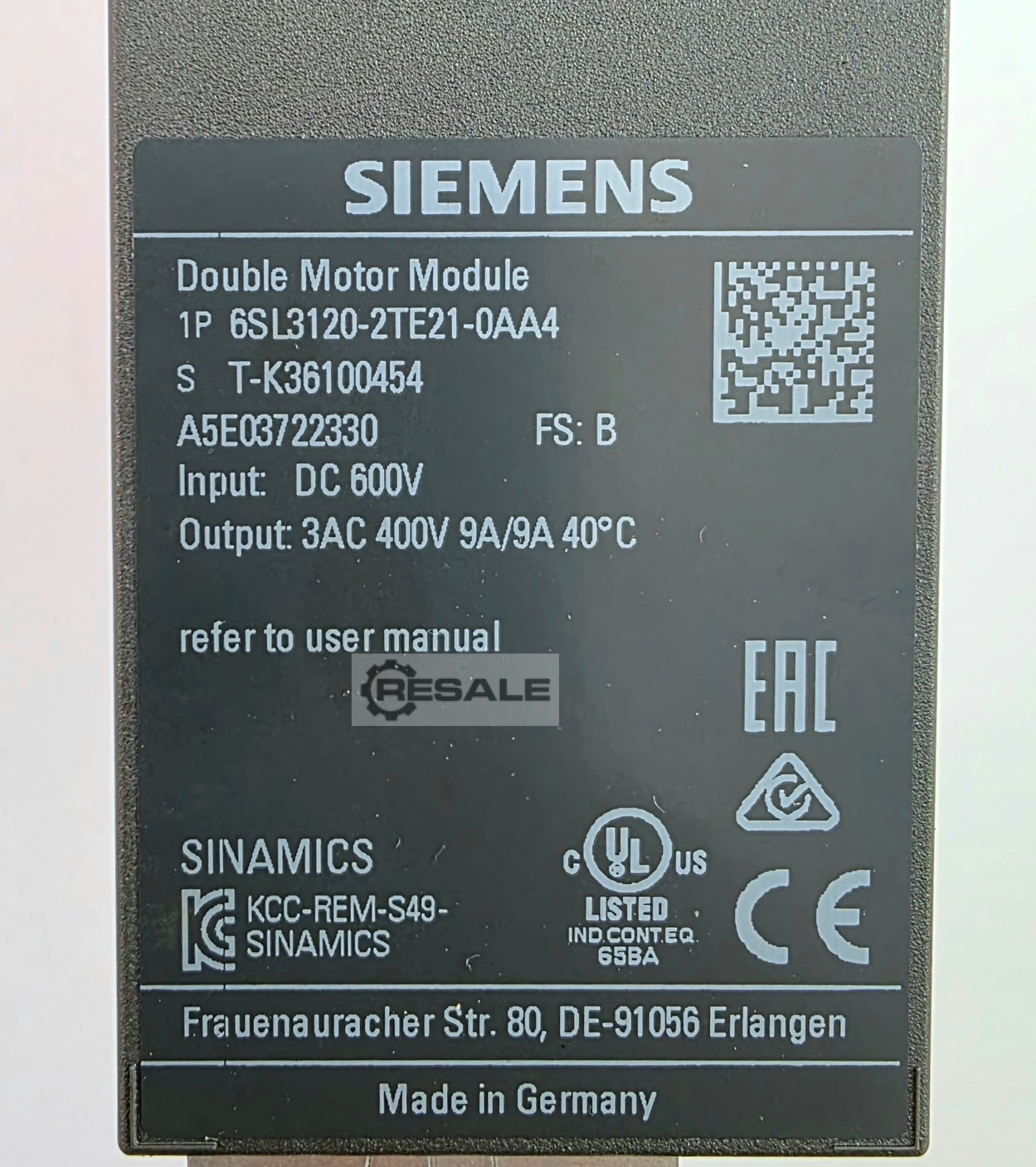 | SIEMENS | 6SL3120-2TE13-0AAO Version A | 450 EUR | |