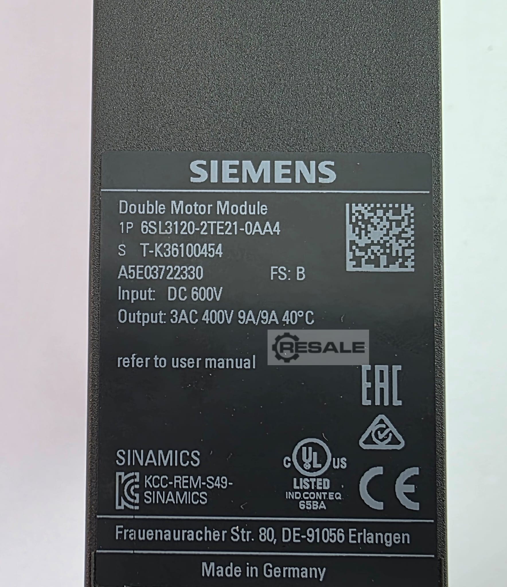 | SIEMENS | 6SL3120-2TE13-0AA3 | 450 EUR | |