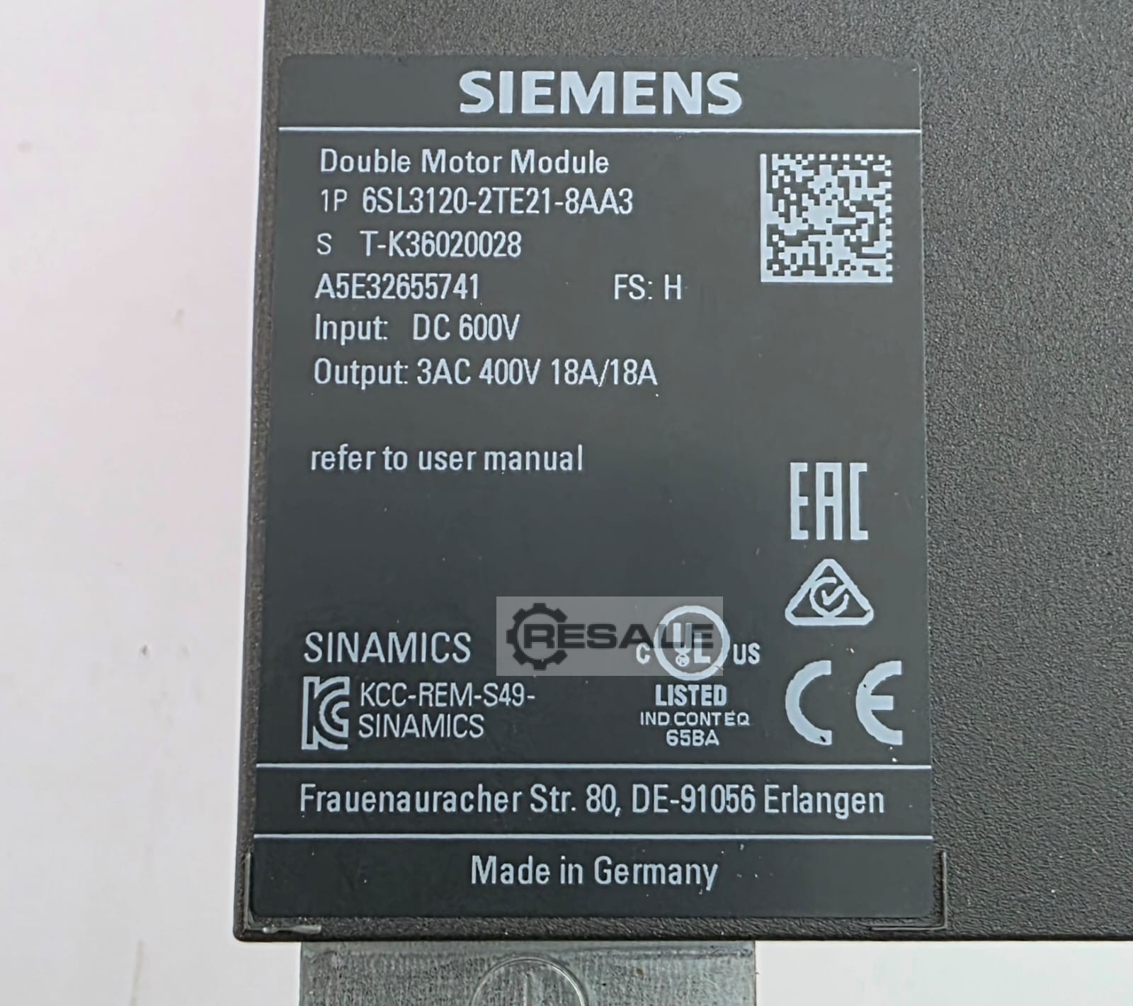 | SIEMENS | 6SL3120-2TE13-0AA4 | 650 EUR | |