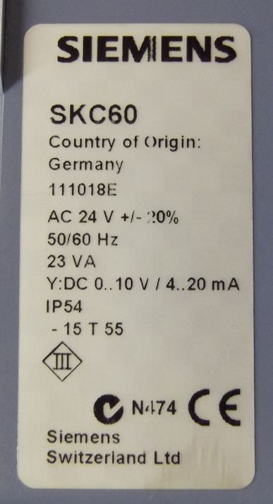 | 2008 | SIEMENS | Siemens Acvatix SKC60 | 150 EUR | [Jan 2015] |
