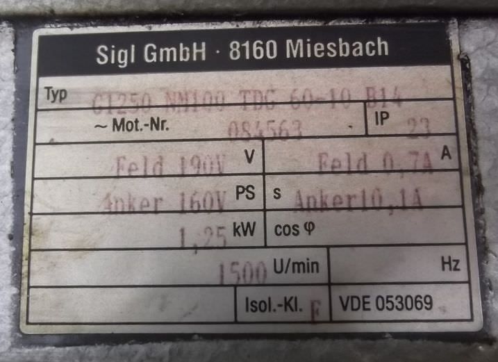 Maschinentyp: Gleichstrom Getriebemotor 1,25 kW 14 U/min