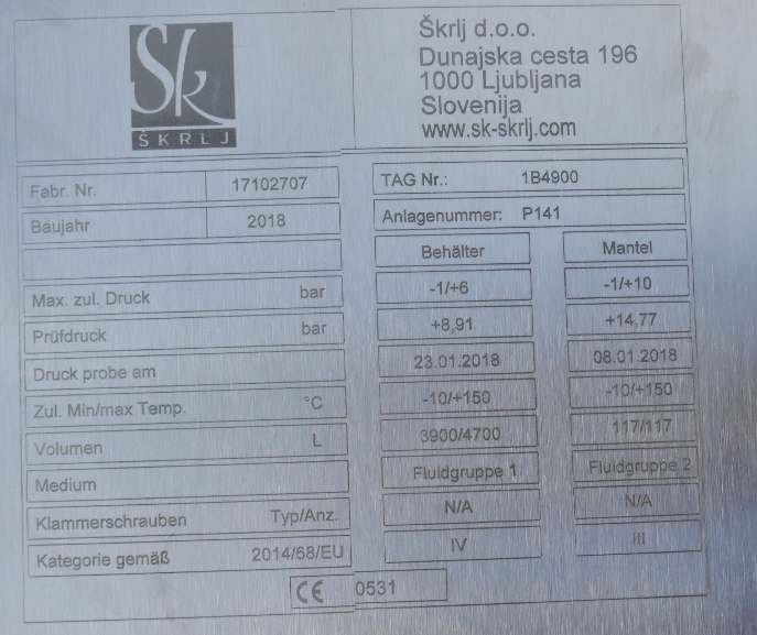 ungebraucht,Hersteller: SK SKRLJ,Volumen: 4.700,Max. zul.