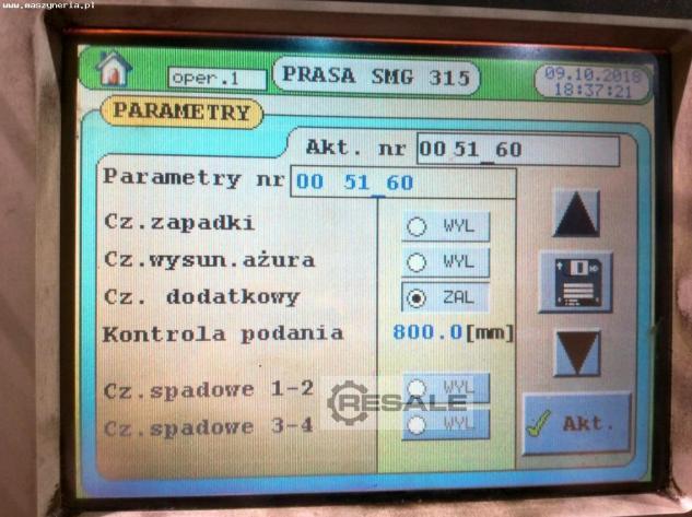 Technische Daten der Presse SMG DS 315-1500/1300
