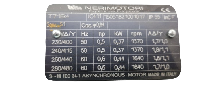 Elektrische Daten: 50Hz V380-500, kW 0,55 /