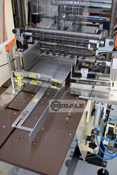 Autom. Volleinschlagmaschine für Faltschachteln. Anlage inkl. 90° Zuführband und diverse Formatteile.