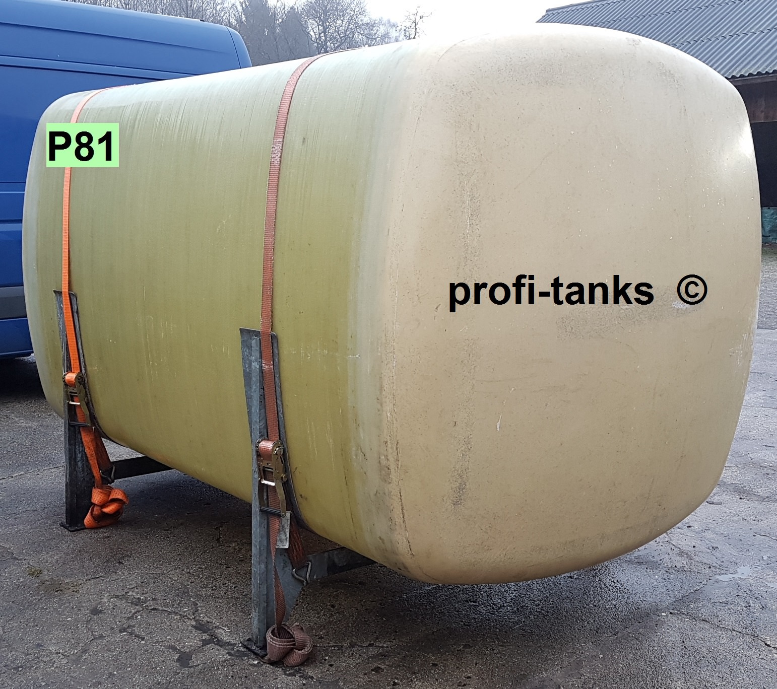 P81 - gebrauchter ca. 6 m³ / 6.000 Liter Polyestertank / GFK-Tank,