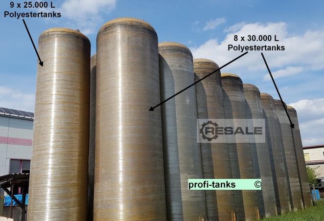 P176 - 8 x gebrauchter ca. 30 m³ / 30.000 L Polyestertank / GFK-Tank