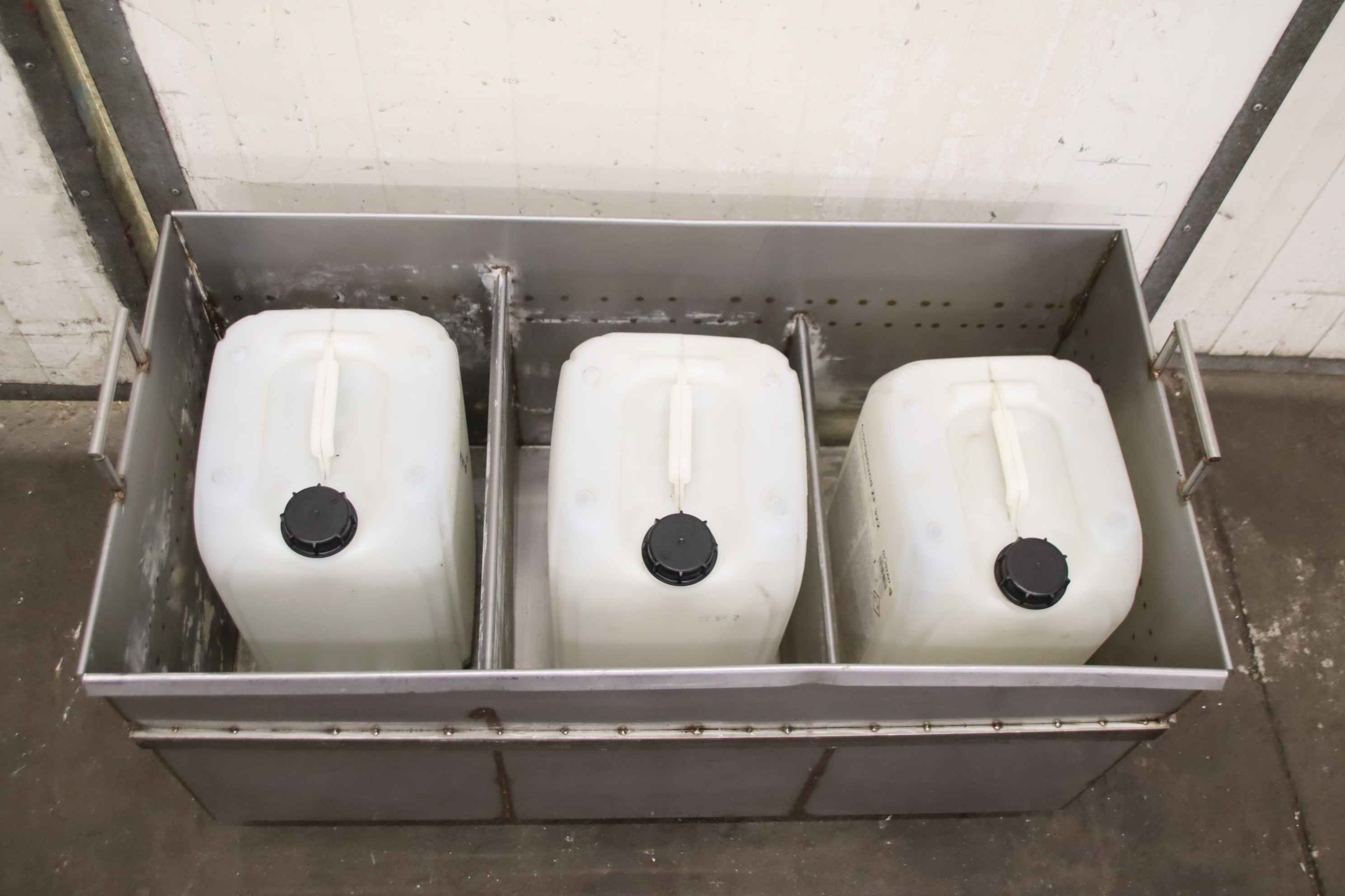 -Lagerbehälter: aus Edelstahl mit 3 Fächern, fahrbar