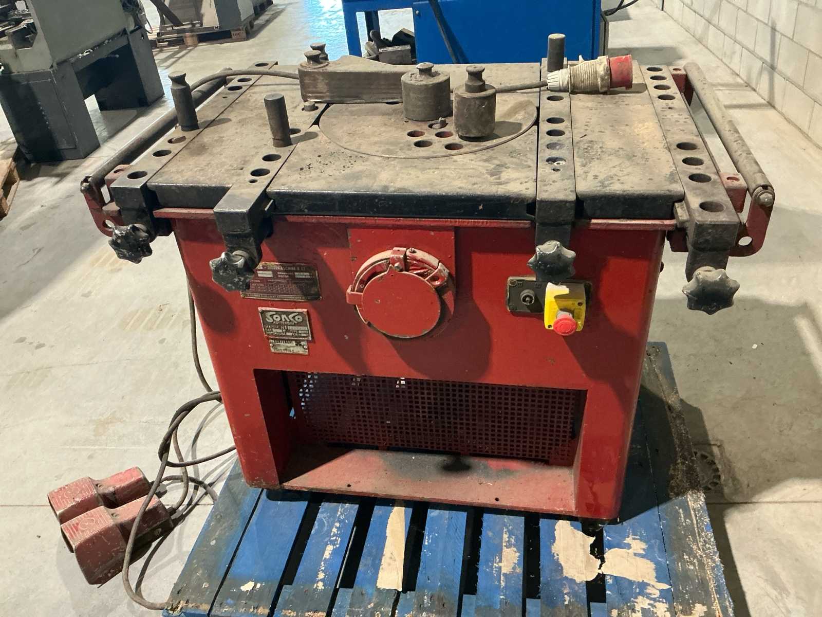 hydraulische Betonstahl Biegemaschine Krupp Futura B 703 Rundstahlbiegemaschine mit Zubehor und kompletten Bedienungsanweisung Tech. Daten Leistungstabelle - Stahl 50-55 kp/mm2 Durchmesser 22 mm - 6 Staebe pro Biegevorgang, 28 mm-4, 32mm -3, Mtfgtw 50 mm- 2 Geschwindigkeit 4-12/ min Bedienung - mit Fusschalter oder Manual, Betriebswahl - HAND - AUTOMAT mit Moglichkeit von 3 BIEGEWINKELVORGABE - jede Seite - 3 Links+3 Rechts komplette Unterlagen, Bedienungsanweisung viel Zubehor Mehr Info auf Anfrage Zubehor - Verschiedene Biegerollen, Bolzen, Reduzierrollen, Gegenhalter Kann man Flach, Rundstahl bearbeiten und die Maschine hat Vorrichtung fur Rohren. Massen 2,3 x 1 x 1 m, Btto 1500 kg