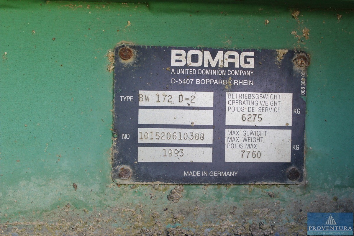 Maschinentyp: Straßenwalze Walzenzug BOMAG BW 172 D-2 BJ. 1993