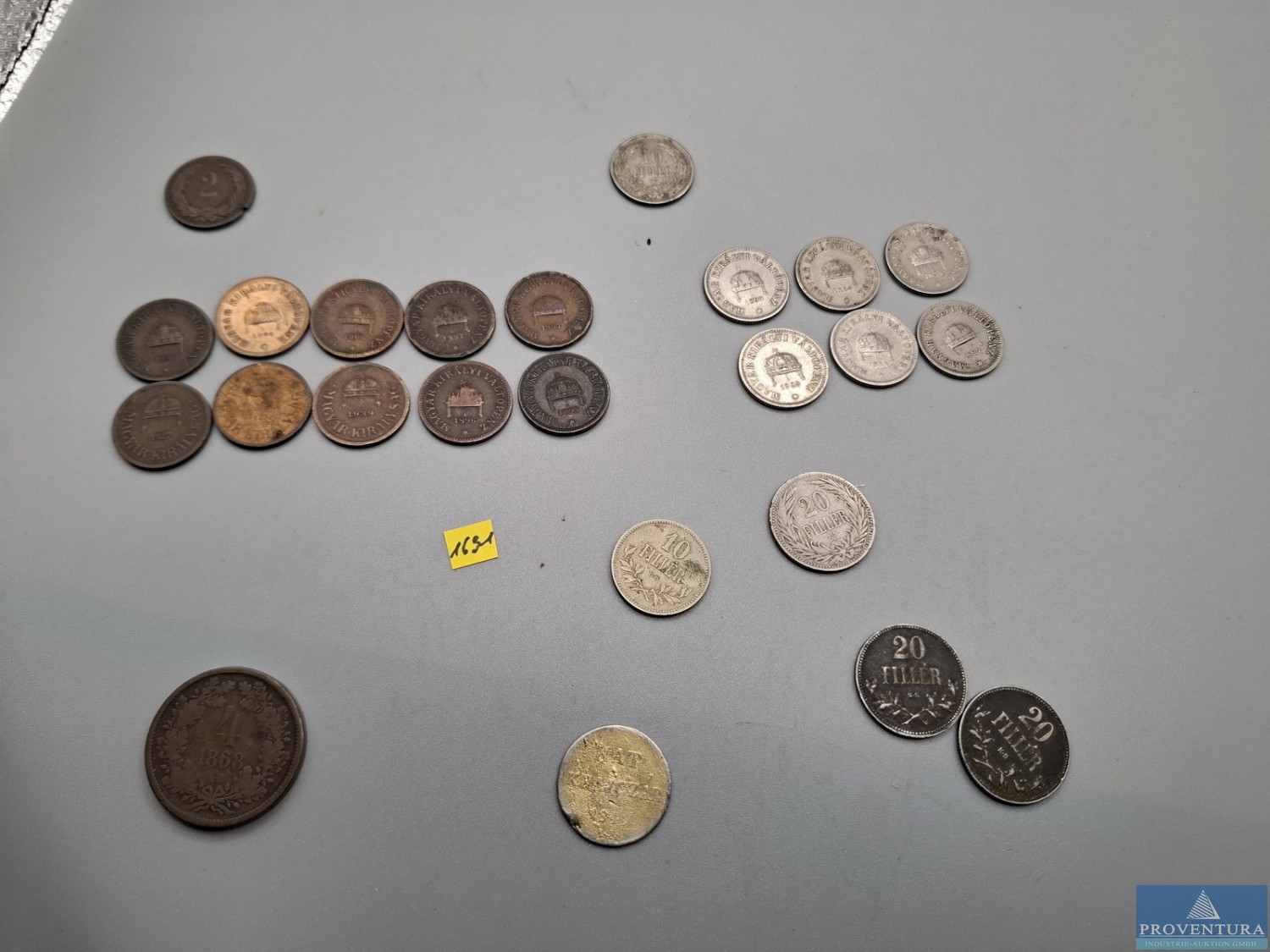 Umlaufmünzen Ungarn Kronenwährung 1x 6 Krajzcar 1849, 1x 4 Kreutzer 1868, 13x 2 Filler, 8x 10 Filler, 3x 20 Filler, gesamt ca. 24 St.