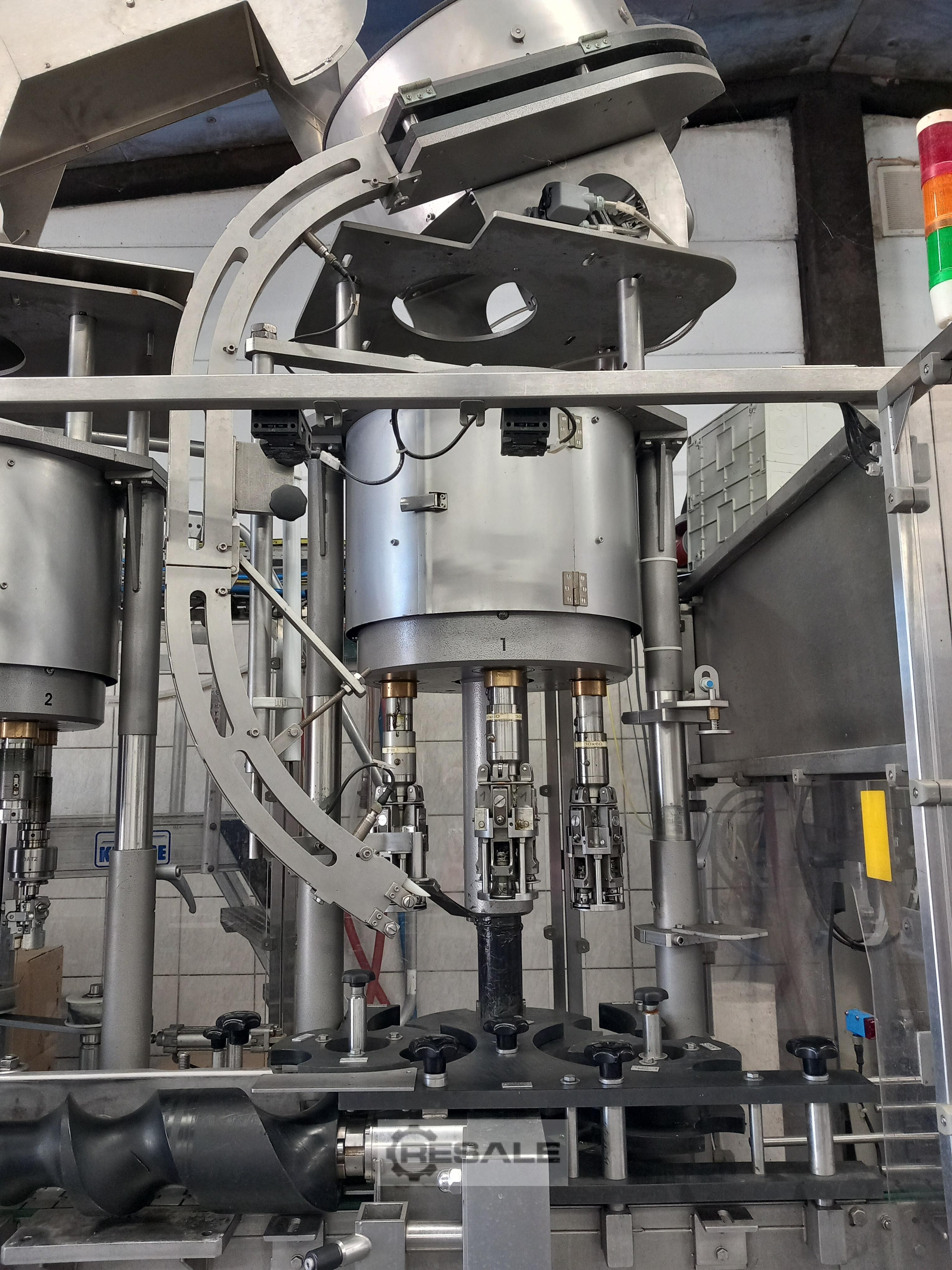 – 4er Schraubverschließer Dr. Datz, Bj. 2010, aufgeteilt auf 2 Stationen a 4 Köpfe; 1. Station für Stelwin Lux Verschlüsse mit Innengewinde / 2. Station für BVS 30×60 Schraubverschlüsse, incl. aufgebautem Vorratsbehälter für ca. 1.500 Verschlüsse