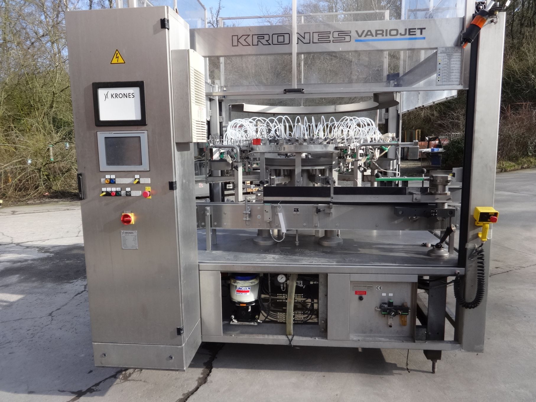 Überblick  Der Rinser reinigt und sterilisiert Behälter und wurde im Jahr 2000 von dem deutschen Hersteller Krones gebaut. Die Maschine wurde bereits demontiert und eingelagert. Technische Details  Leistung: bis zu 32.000 Behälter/ h  Anzahl der Spülstationen: 50 (einige davon fehlen)  Laufrichtung: gegen den Uhrzeigersinn Behälter: Glas + Kunststoff  Benetzte Teile in V2A  Zentralschmierung Umfassende Dokumentation vorhanden Elektropneumatische Ventilsteuerung Siemens S7-Steuerung Spannung: 400 / 230 V Frequenz: 50 Hz Steuerspannung: 24 V DC