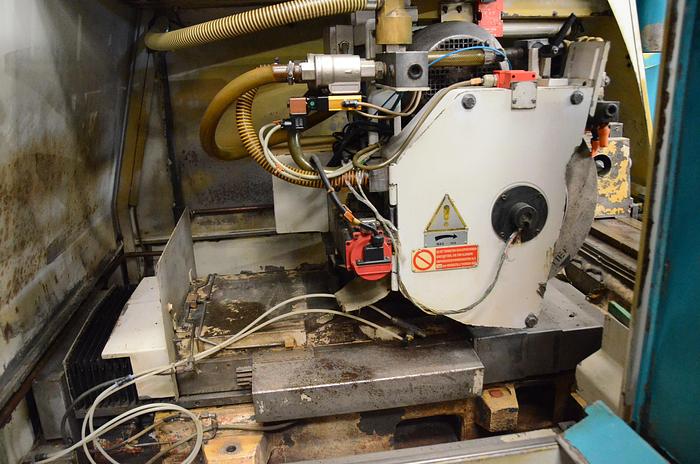 Distance between points: 1000 mm, Ø max to be rectified: 350 mm, Max travel Z axis: 1.180 mm, Max travel X axis: 350 mm, Height of points: 180 mm, Ø max to be rectified with the left wheel: 350 mm, Left grinding wheel dimensions (od x id x width): Ø450xØ203x80 mm, Working wheel dimensions (od x id x width): 508x203.2x80mm, Right grinding wheel dimensions (od x id x width): Ø300xØ127x40 mm, cnc brand: FANUC, cnc model: 18TC, Main engine power: 7.5 Kw, Maximum weight between points: 120 Kg, Total installed power: 15 KW, Standard peripheral speed: 45 m/s, Automatic grinding head rotation with Hirt 2.5º: +5º_-180º, B axis control system: Incremental encoder + 2.5º Hirt ring, B axis motor: 2.5 Nm at 3000 rpm, X axis speed: 10,000 mm/min, X axis resolution: 0.0005 mm, Z axis speed: 10,000 mm/min, Z axis resolution: 0.005 mm, Z axis table rotation: 0º_9º, Workpiece head cone: MORSE 5, Workpiece head hole: Ø36, Manual rotation of workpiece head: 0º_15º, Workpiece head speed: 10_800rpm, tailstock cone: MORSE 4, Counterpoint tour: 35 mm, Lateral tailstock fine adjustment: +/- 0.10mm, Accessories: Mist aspirator, BALANCE SYSTEM grinding wheel balancer, Cooling equipment with paper and magnetic filter, Optical ruler in X and Z axes, Encoder in B axis, Dimensions (lengthxwidthxheight): 3800 × 2250 × 1800mm, Weight approx.: 6.500 Kg