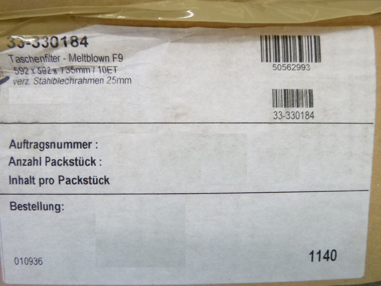 Maschinentyp: Taschenfilter 592 x 562 x 735 mm, 3 Stück