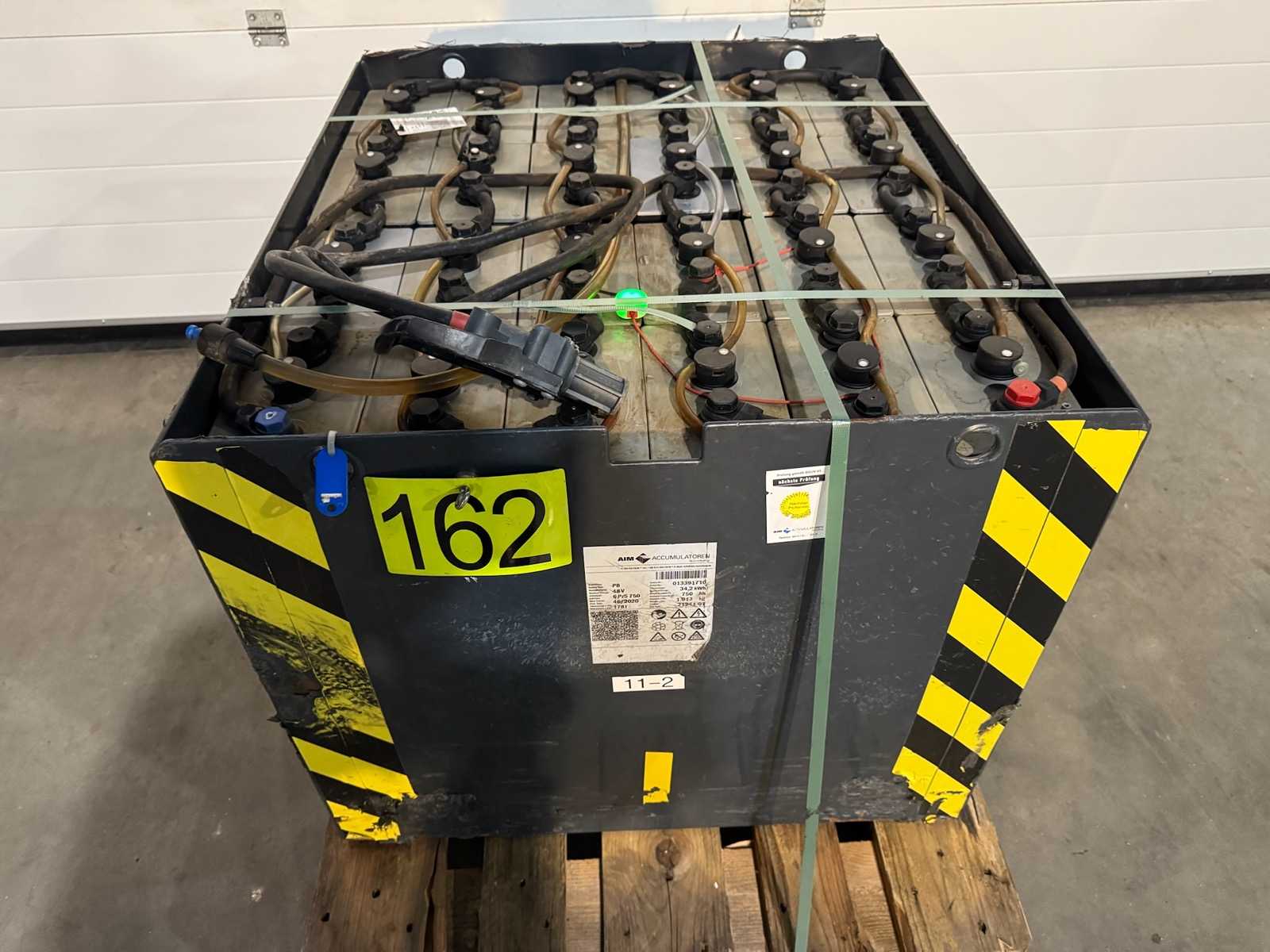 Batterie aus ehemaligem Linde Service 830x730x630mm Spannung im Ruhezustand ungeladen 52,33 V und somit noch sehr gut. Verladung auf LKW mit Gabelstapler. Lieferung per Spedition auf Anfrage möglich. Auktions-ID: A1-45450-1162