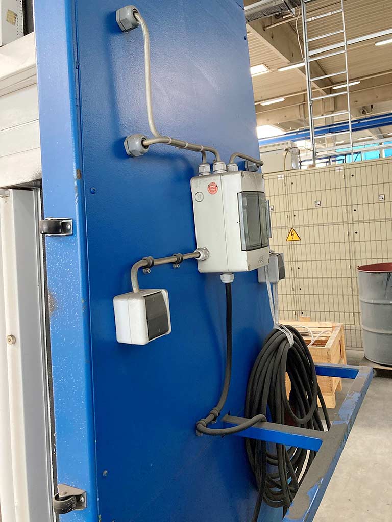 Ein vertikaler Glaslagerschrank TMB mit integrierter Beleuchtung zur Prüfung von Glasplatten steht zur Verfügung. Tragfähigkeit: 2000kg, Maschinendimensionen X/Y/Z: ca. 6550mm/1250mm/3600mm, Gewicht: ca. 1750kg. Die Beleuchtung müsste ggf. überprüft und erneuert werden. Eine Besichtigung vor Ort ist möglich.