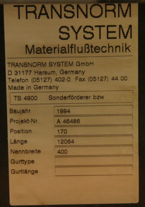 | 1995 | TRANSNORM | TS 1200 3200-500-400 | 2064 EUR |
