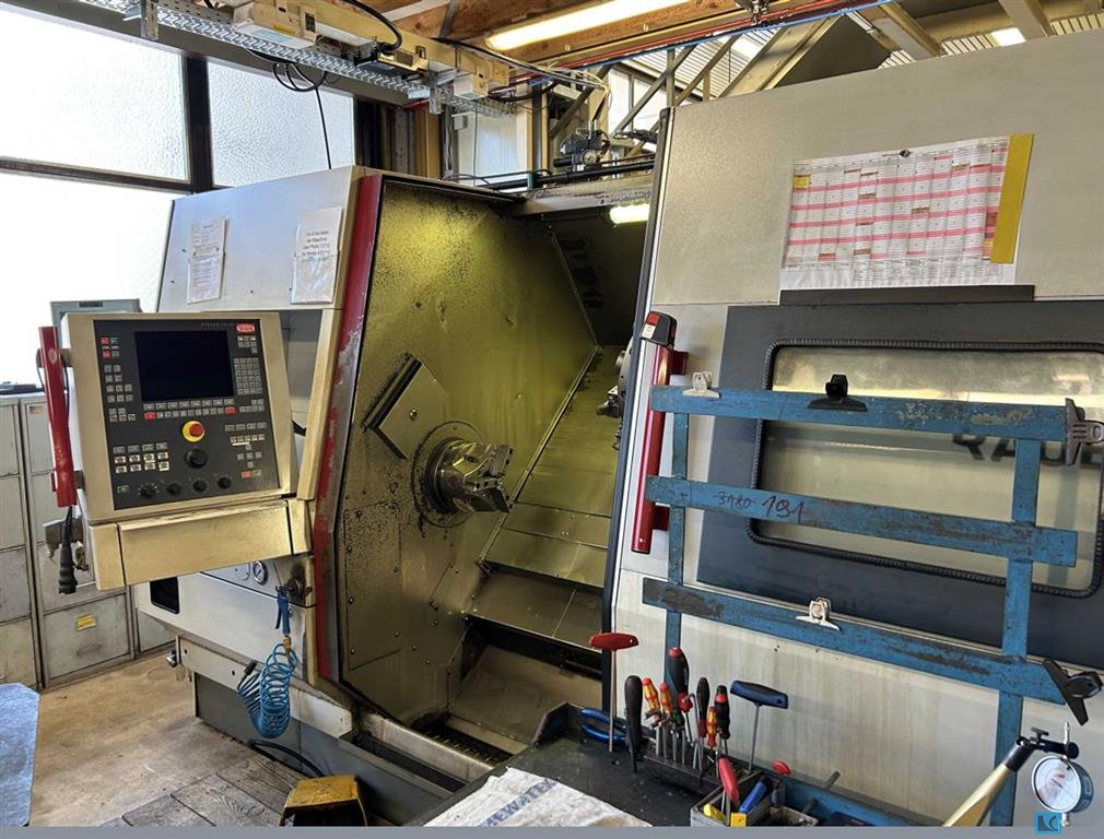 Drehlänge: 450mm, Spindeldurchlass: 65mm, Drehzahl: 4000U/min, Leistung Hauptspindel/Gegenspindel: 18,5kW/11kW, Werkzeugplätze: 10, angetriebene Werkzeuge: 10, Hydraulikkapazität: 150l, Hydraulikdruck: 60bar, Anschlussleistung: 39kW. Eilgang X1/X2: 15m/min, Vorschubkraft: 5000N, Vorschubweg: 140mm. Eilgang Z1/Z2: 30m/min, Vorschubkraft: 8000N, Vorschubweg: 450mm. Eilgang Y1: 6m/min, Vorschubkraft: 8000N, Vorschubweg: +/-35mm. Maschinendimensionen X/Y/Z: ca. 4150mm/2000mm/1800mm, Gewicht: ca. 4750kg, Steuerung: Traub System TX 8F, Betriebsstunden: 78825h. Dokumentation vorhanden. Eine Besichtigung vor Ort ist möglich.