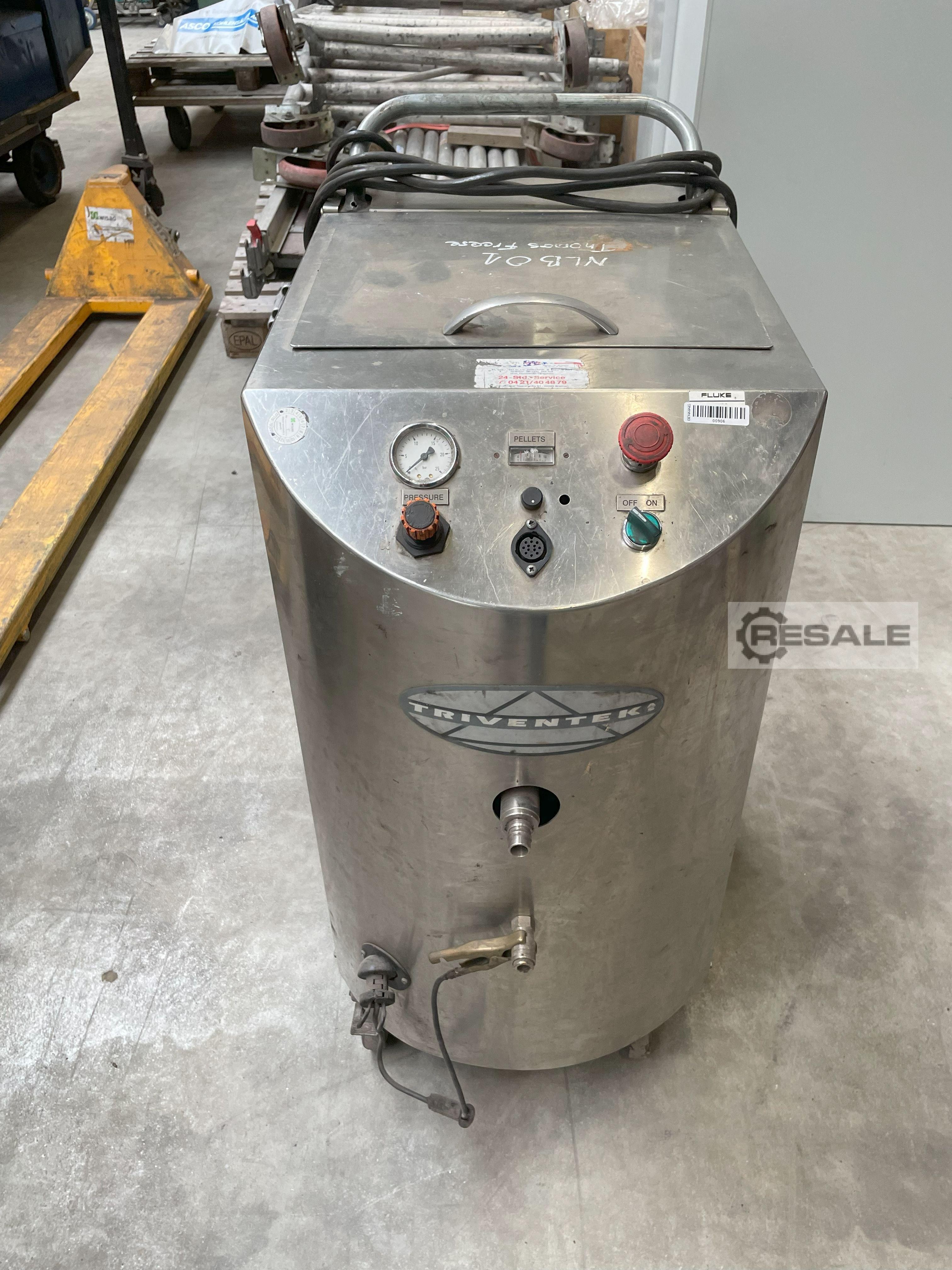 Hersteller: Triventec Typ: Trockeneisstrahlgerät (genauer Typ nicht bekannt) Verfügbare Stückzahl: 2 Stück Zustand: gebraucht Verwendung: Reinigung und Oberflächenbehandlung durch Trockeneisstrahlen Standort: Bremen