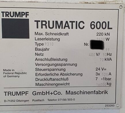 | 2000 | TRUMPF | TRUMATIC 600L combined | 9000 EUR | [Nov 2024] |