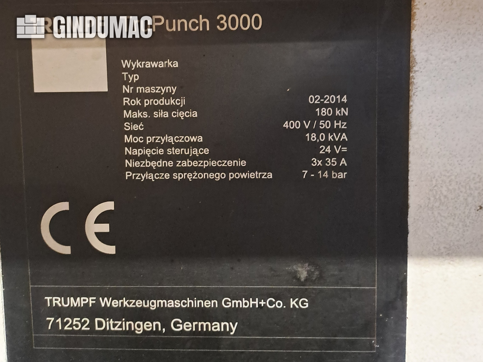 | 2011 | TRUMPF | TRUPUNCH 1000 | 128000 EUR | [Feb 2018] |