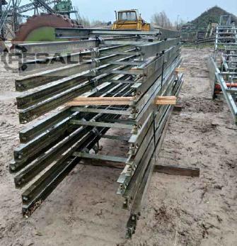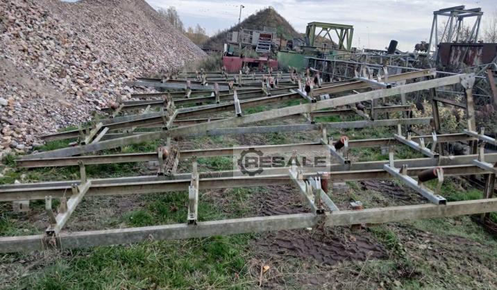 ca. 180m Landbandstraße für 650 mm Gurtbreite bestehend aus 30 Stück Landband Profilstösse, Feuerverzinkt, in Profilhöhen von 120 mm (9 Stk) und 100 mm (21 Stk), 1 Stück Antriebsstation mit Stiebel Aufsteckgetriebe 18,5/22kW mit Übersetzungsverhältnis i=11,6:1 - Trommeldurchmesser 430 mm - Förderbandgeschwindigkeit v= 2,68 m/s, 1 Stück Umkehrstation - Trommeldruchmesser 330mm, 150 Stück Rollenstühle, dreiteilig plus Befestigungsschrauben