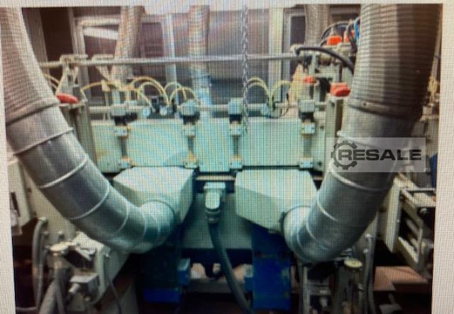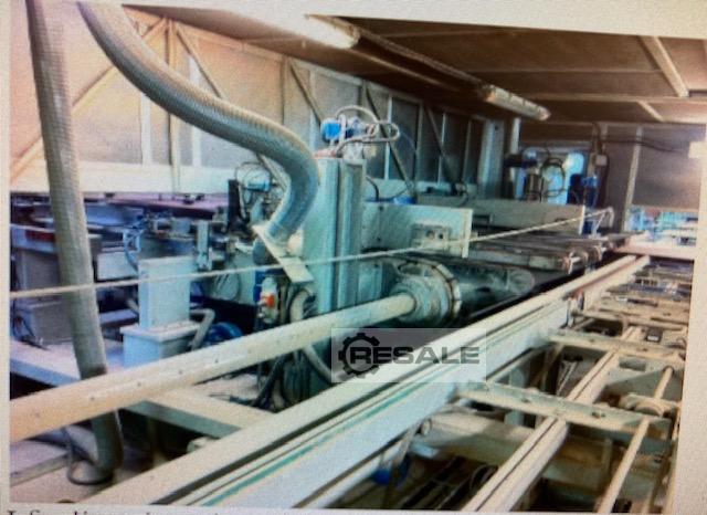 Von dort gelangen sie in einen Vorratsbehälter (10 Stück).Sie gelangen in einen Vorratsbehälter (10 Stück). Getriebe 90Getriebe 90 - Kipper Mittels einer motorisierten Rollenbahn gelangen sie in die TSA420-Längsquadriermaschine, und die Verriegelung wird hergestellt, die trocken oder geklebt sein kann. Ausstieg aus der Längsformatkreissäge
