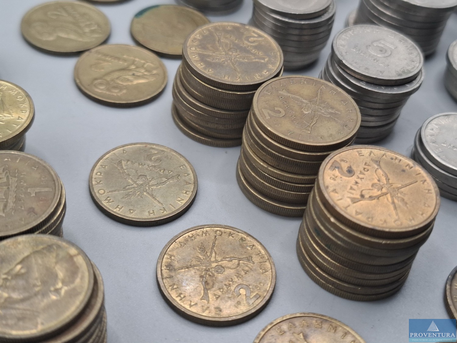 Umlaufmünze Griechenland ab 1973 4x 50 Lepta, 40x 1 Drachme, 8x 2 Drachmen, 35x 5 Drachmen, 26x 10 Drachmen, 31x 20 Drachmen, 9x 50 Drachmen, 15x 100 Drachem, gesamt 168 Stück
