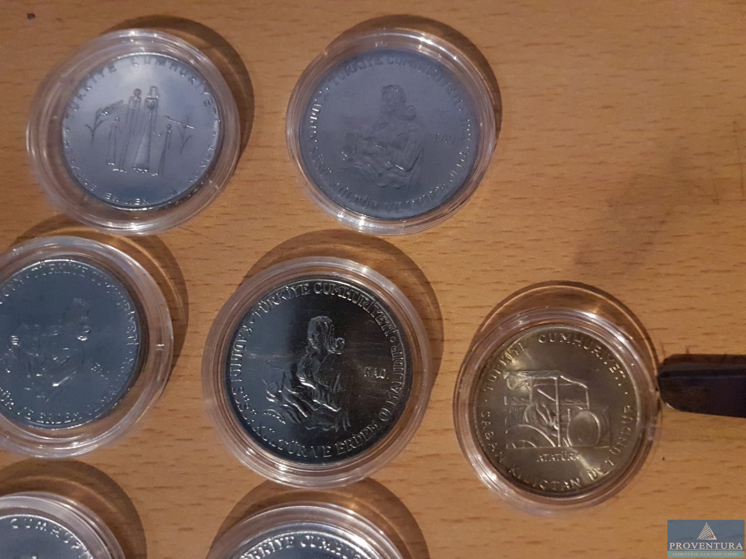 Umlaufmünzen Türkei FAO-Ausgaben st 1 Lira 1979 KM926, 2 1/2 Lira 2x 1977 KM910, 1970 KM896, 1978 KM915, 5 Lira 2x 1976 KM909, 1980 KM939, 150 Lira 1978 KM918.1, gesamt 9 St.