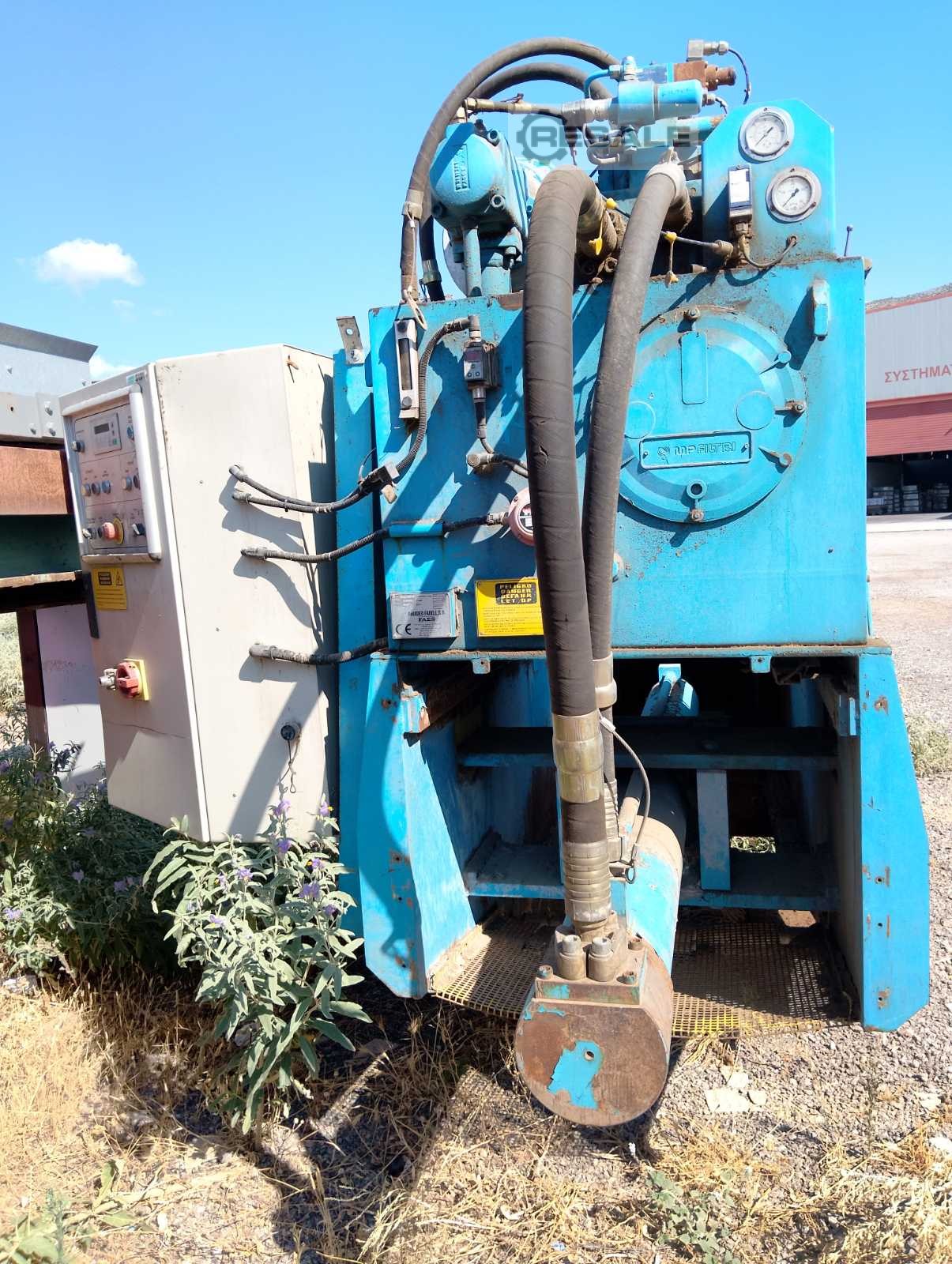 Gebrauchte KOLMAG - PGP 600 F. Artikelnummer: 0119 Marke: KOLMAG - ITALIEN Modell: PGP 600 F Hydraulische Presse für Formen, Rahmen, Möbelelemente, Massivholztüren, Kunststoffe, Verbundwerkstoffe und verschiedene Presse modularer Aufbau mit schweren, dicken Blechen ohne Schweißnähte und mit Werkzeugmaschine bearbeitet Oleodinomische Anlage mit Kolbenvorfüllsystem, um ein schnelles Öffnen und Schließen der Platten zu ermöglichen Abmessungen der massiven Stahlplatten mm 1600 x 500 - Dicke mm 60 mit elektrischen Widerständen - Maximale Temperatur 260°. N° 3 Kolben Durchmesser mm 240 Druck kg/cm2 56 Schub Tonn 450 Sicherheits-Lichtschranken Hydraulikaggregat Kw 7,5 Heizplatten mit Leistungsaufnahme 31 Kw Steuerplatine mit Manometer - Timer zum Öffnen der Platten - Telethermometer zur Regelung der Temperatur der oberen Platte - Telethermometer zur Regelung der  ...