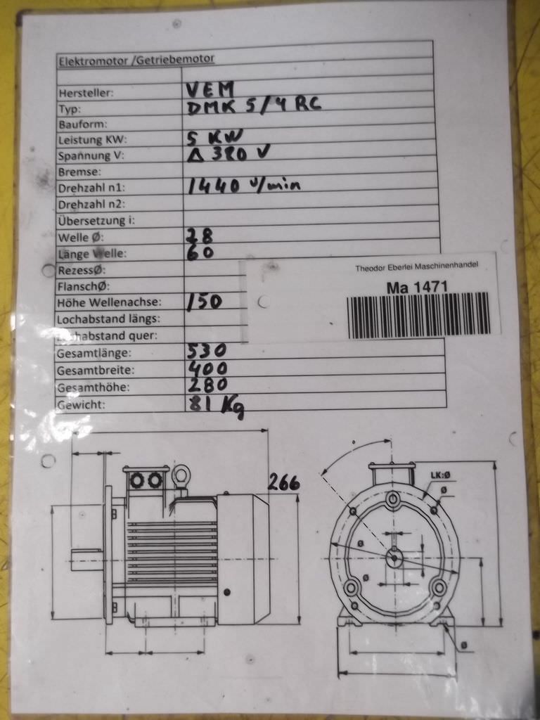 Maschinentyp: Elektromotor 5 kW 1440 U/min