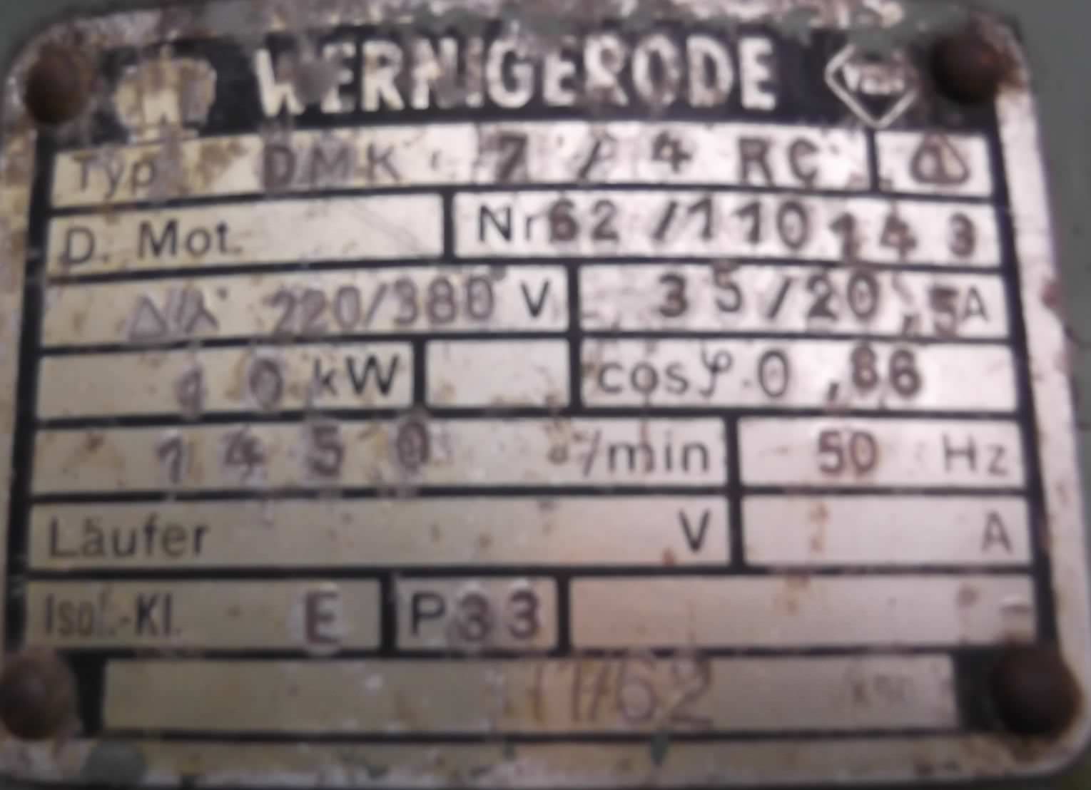 Maschinentyp: Elektromotor 10 kW 1450 U/min