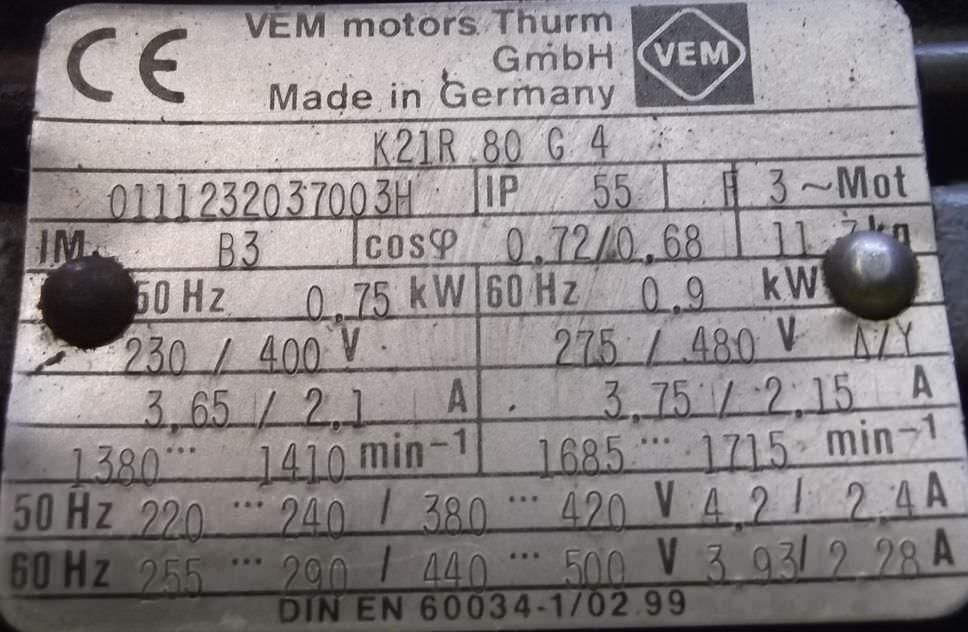 Maschinentyp: Getriebemotor 0,75 kW 32 U/min
